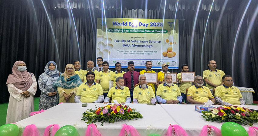 বাংলাদেশ কৃষি বিশ্ববিদ্যালয়ের (বাকৃবি) ভেটেরিনারি অনুষদের উদ্যোগে উৎসবমুখর পরিবেশে পালিত হয়েছে ‘বিশ্ব ডিম দিবস-২০২৫’।