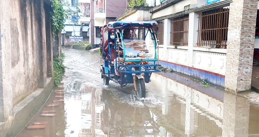ইজিবাইক চালক রফিকুল ইসলাম বলেন, ‘সড়কগুলোতে খানাখন্দ রয়েছে, তার ওপর জমে থাকা পানি—এই দুইয়ে মিলে চলাচল একেবারে দুর্বিষহ হয়ে পড়েছে।’