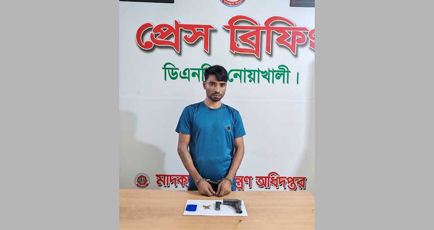 নোয়াখালীতে পিস্তল-গুলিসহ মাদক কারবারি গ্রেপ্তার