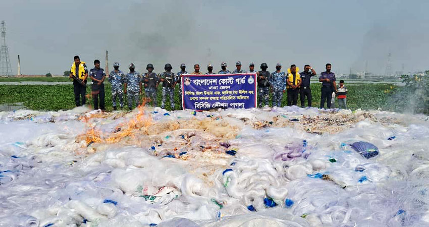 মুন্সীগঞ্জে কোস্ট গার্ড ও মৎস্য অধিদপ্তরের যৌথ অভিযানে প্রায় ৬ শত ২৬ কোটি টাকার নিষিদ্ধ কারেন্ট জাল জব্দ করা হয়েছে।