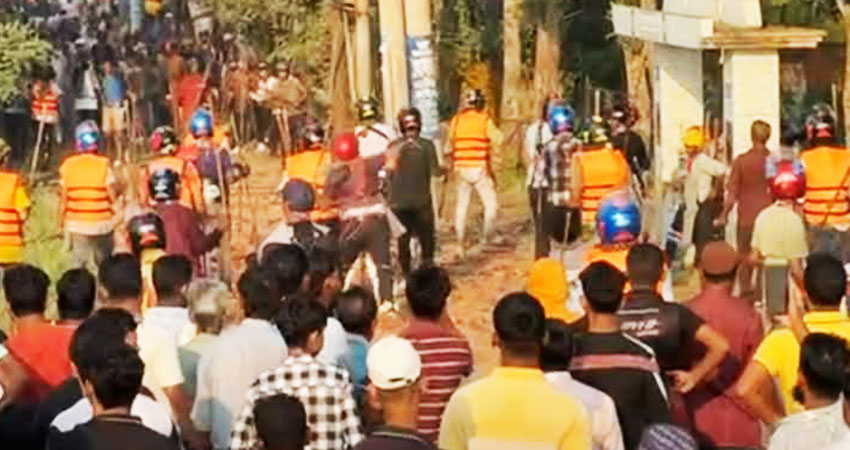 স্থানীয় সূত্রে জানা যায়, প্রায় পাঁচ ঘণ্টাব্যাপী চলা এই সংঘর্ষে টেঁটা, বল্লম, লাঠিসোঁটা, হেলমেট, লাইফ জ্যাকেট এবং ইটপাটকেল ব্যবহার করা হয়। সংঘর্ষে উভয় পক্ষের অন্তত ৫০ জন আহত হন এবং কয়েকটি ঘরবাড়িতে আগুন ধরিয়ে দেওয়া হয়।