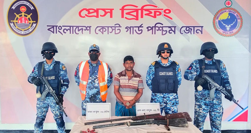 সুন্দরবন থেকে অস্ত্র ও গোলাবারুদসহ দুর্ধর্ষ ডাকাত রাঙ্গা বাহিনীর প্রধান নজরুল শেখ (৪৮)–কে আটক করেছে কোস্ট গার্ড সদস্যরা। এ সময় তার কাছ থেকে দুটি একনলা বন্দুক ও ছয় রাউন্ড কার্তুজ উদ্ধার করা হয়। আটক নজরুল বাগেরহাটের রামপাল থানার বাসিন্দা।