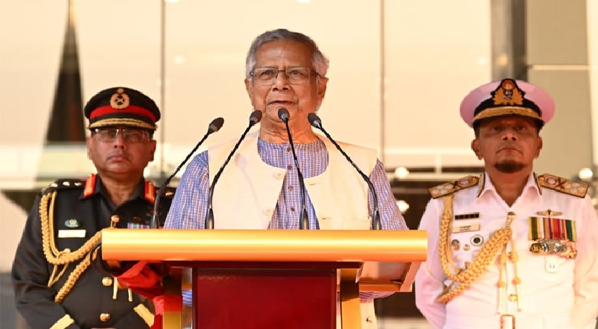 সশস্ত্র বাহিনী সম্পর্কে প্রধান উপদেষ্টা জানান, দেশের স্বাধীনতা ও সার্বভৌমত্ব রক্ষার পাশাপাশি দেশ গঠন ও জাতীয় দুর্যোগ মোকাবিলায় সশস্ত্র বাহিনী সর্বদাই জনগণের পাশে থেকে কাজ করে যাচ্ছে। ২০২৪ সালের ছাত্র–জনতার অভ্যুত্থান এবং চলমান দেশ পুনর্গঠন ও সংস্কারকাজেও সশস্ত্র বাহিনী মানুষের পাশে দাঁড়িয়ে আস্থা ও সমর্থনের যোগ্যতা ধরে রেখেছে। গণতান্ত্রিক ও নিয়মতান্ত্রিক নেতৃত্বের প্রতি অনুগত বাংলাদেশ সশস্ত্র বাহিনী তাদের পেশাগত দক্ষতা ও দেশপ্রেমের সমন্বয়ে দেশের জন্য ত্যাগ ও তৎপরতার এই ধারাবাহিকতা অক্ষুণ্ন রাখবে—এমন বিশ্বাসও ব্যক্ত করেন তিনি।